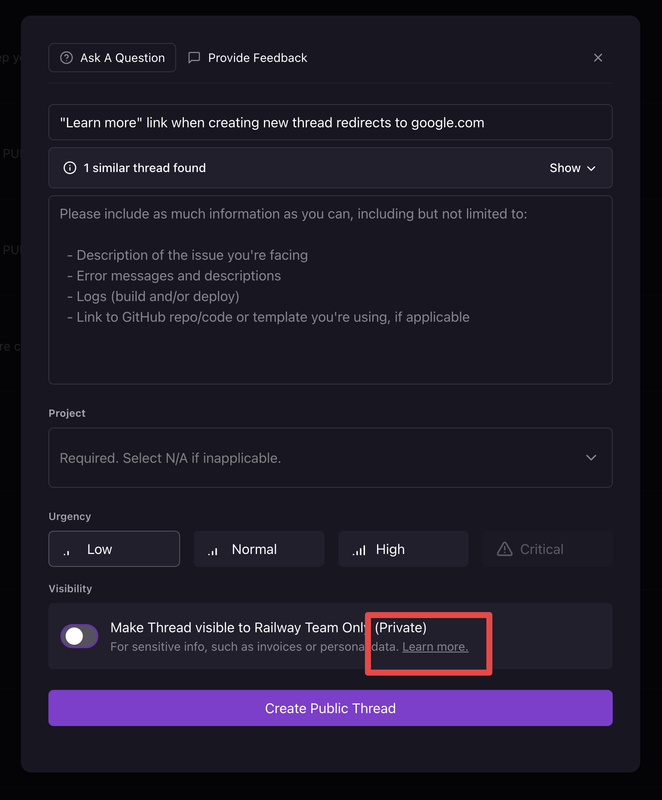 "Learn more" link when creating new thread redirects to google.com