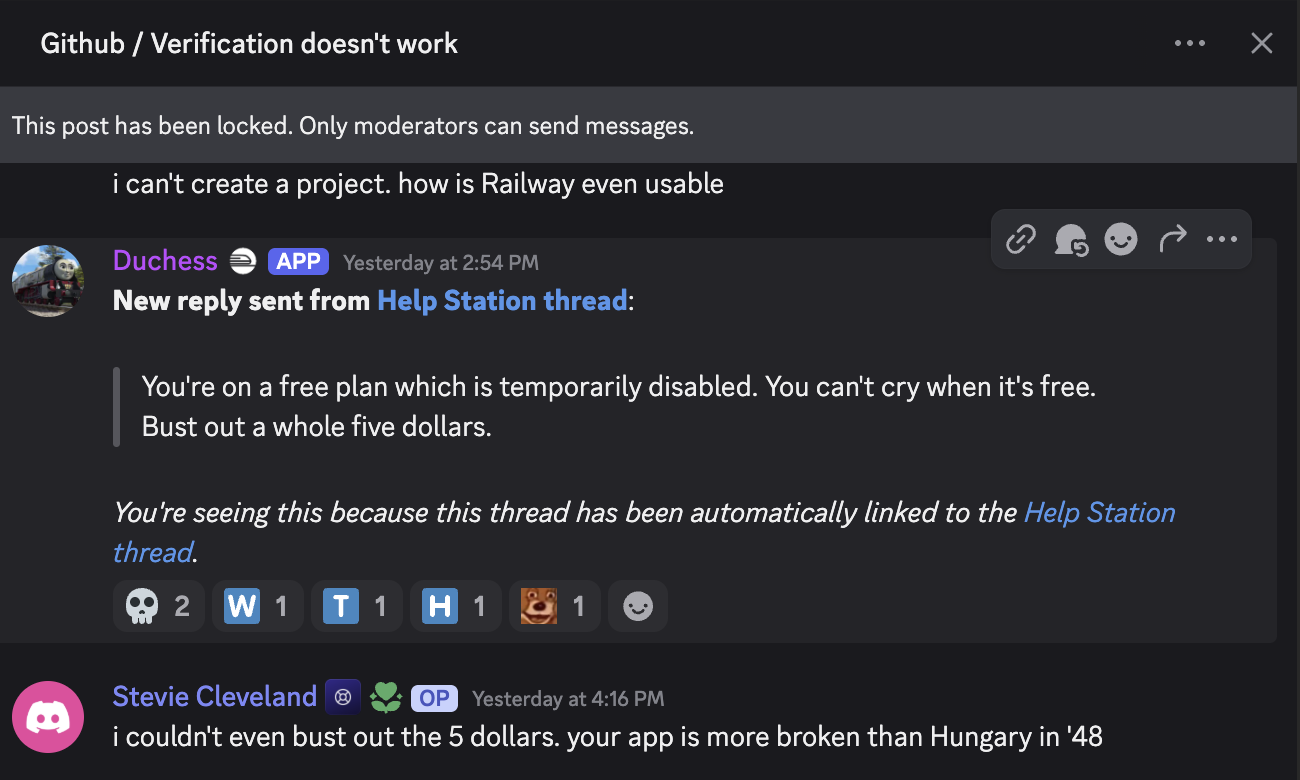As stated in the thread, the reason you were unable to log in is because of an active incident, which has since been resolved. You mentioned you were leaving Railway because of it, which is your choice. You have all the information you need to continue